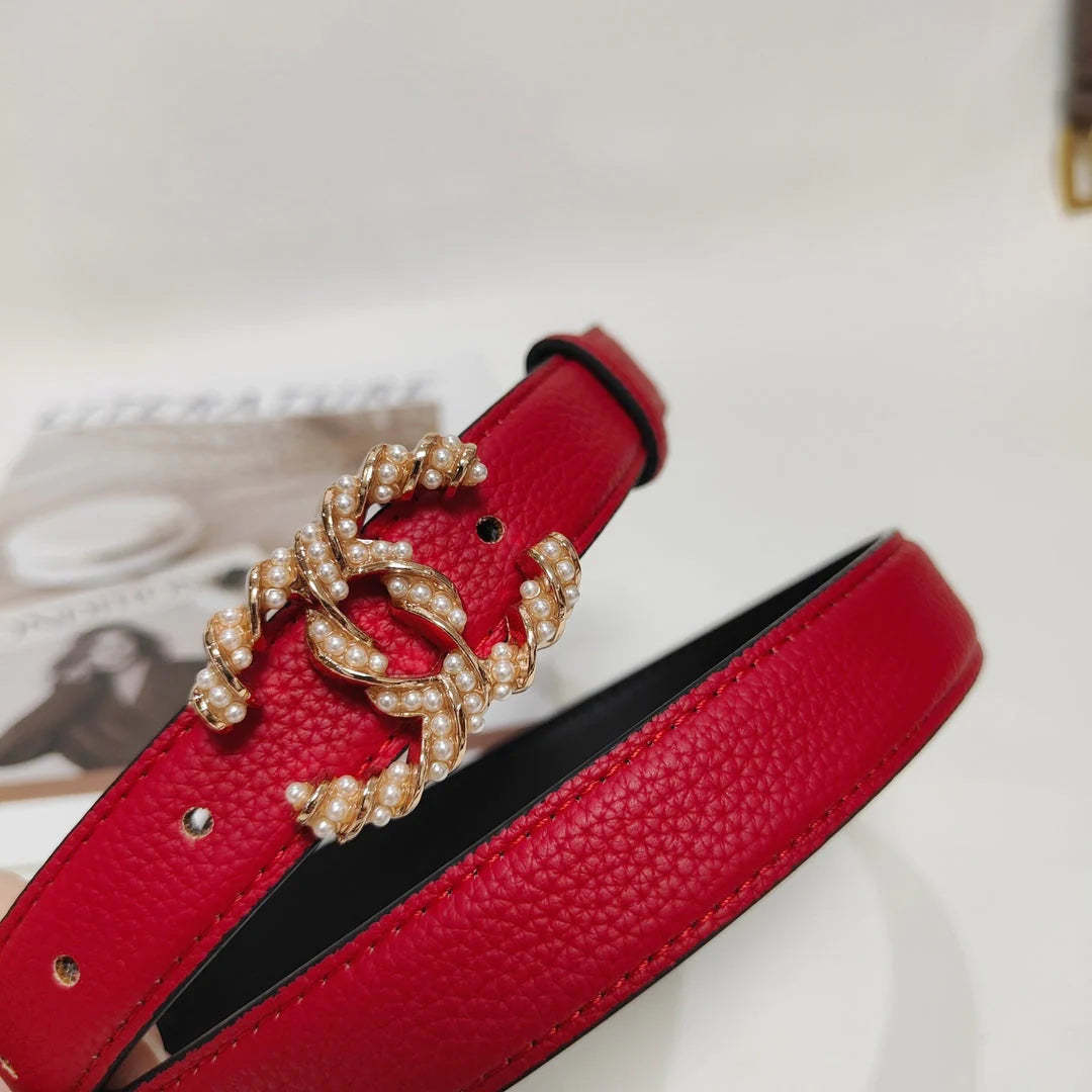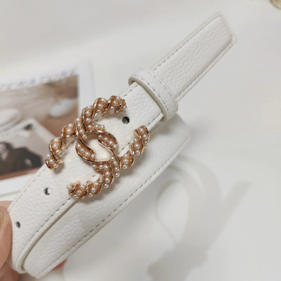 4 Colors fashion pearl leather belt