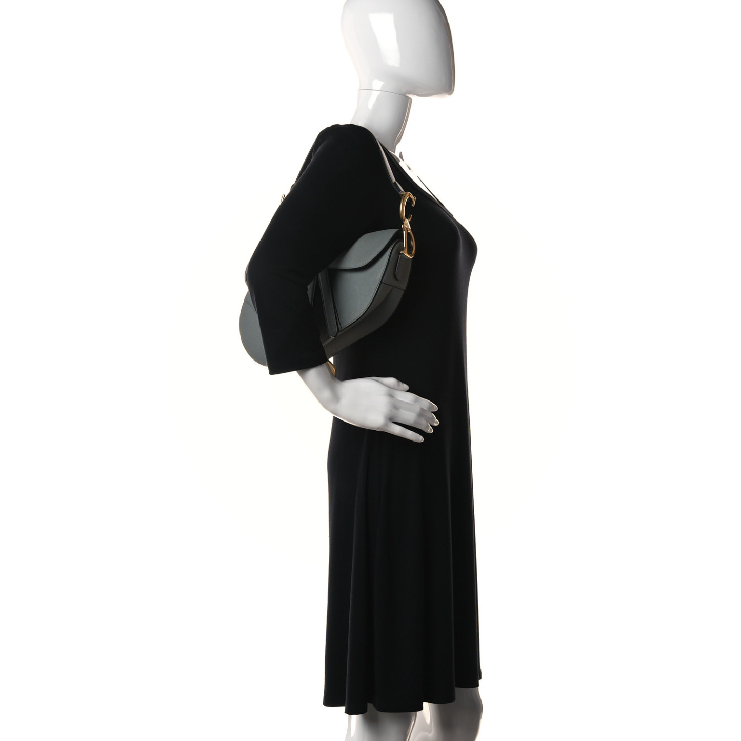 CHRISTIAN D Grained Calfskin Saddle Bag Grey
