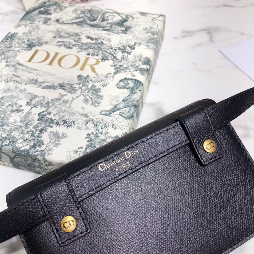 Dior Black Calfskin Saddle Belt Bag