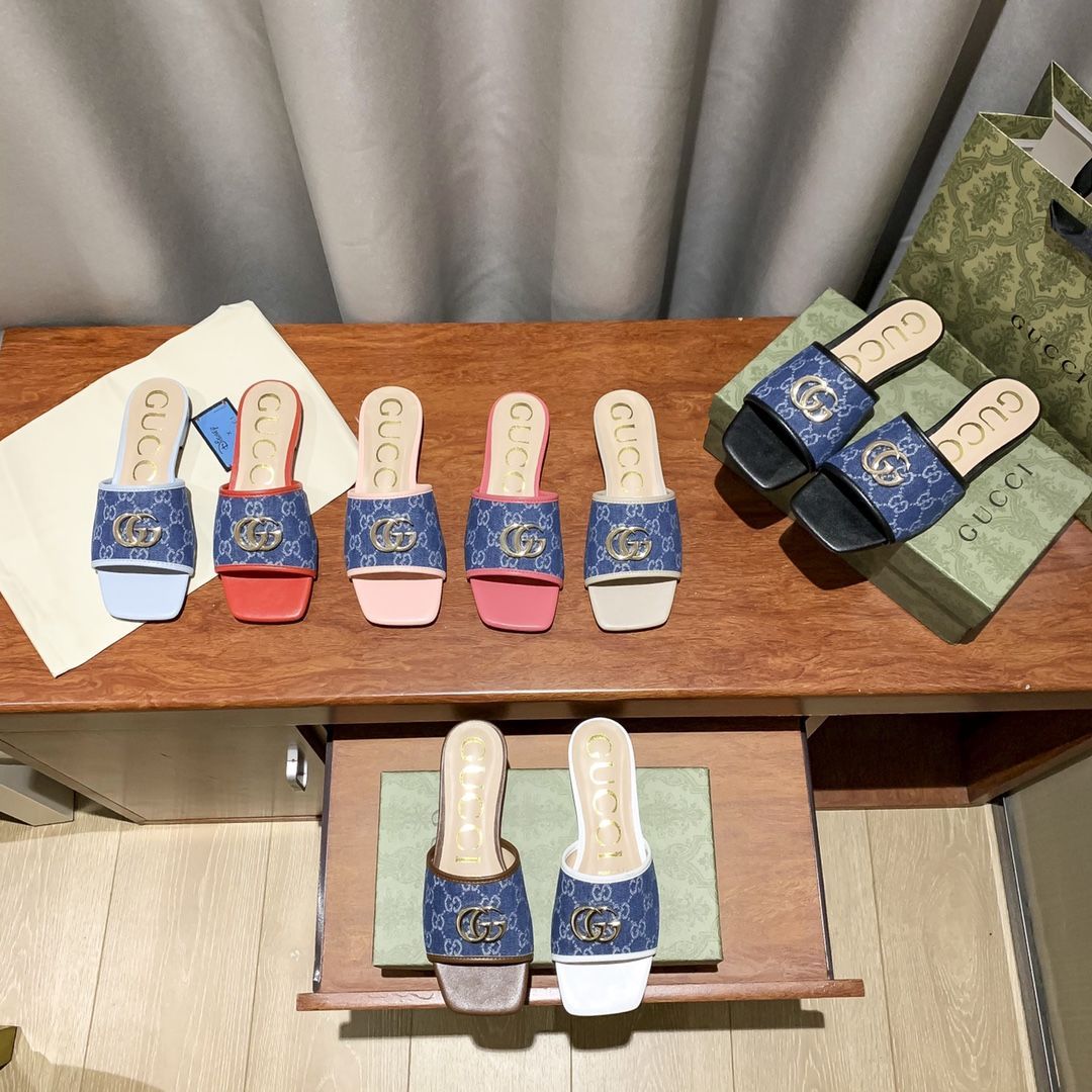 - Classic shoes have been reinterpreted into a distinctive connotation of the brand identity. This sandal is made of twill quilted classic GG canvas material. ingeniously embellished with classic double G shape accessories from the 1970s. paying tribute to the brand's long design heritage with a timeless design.
