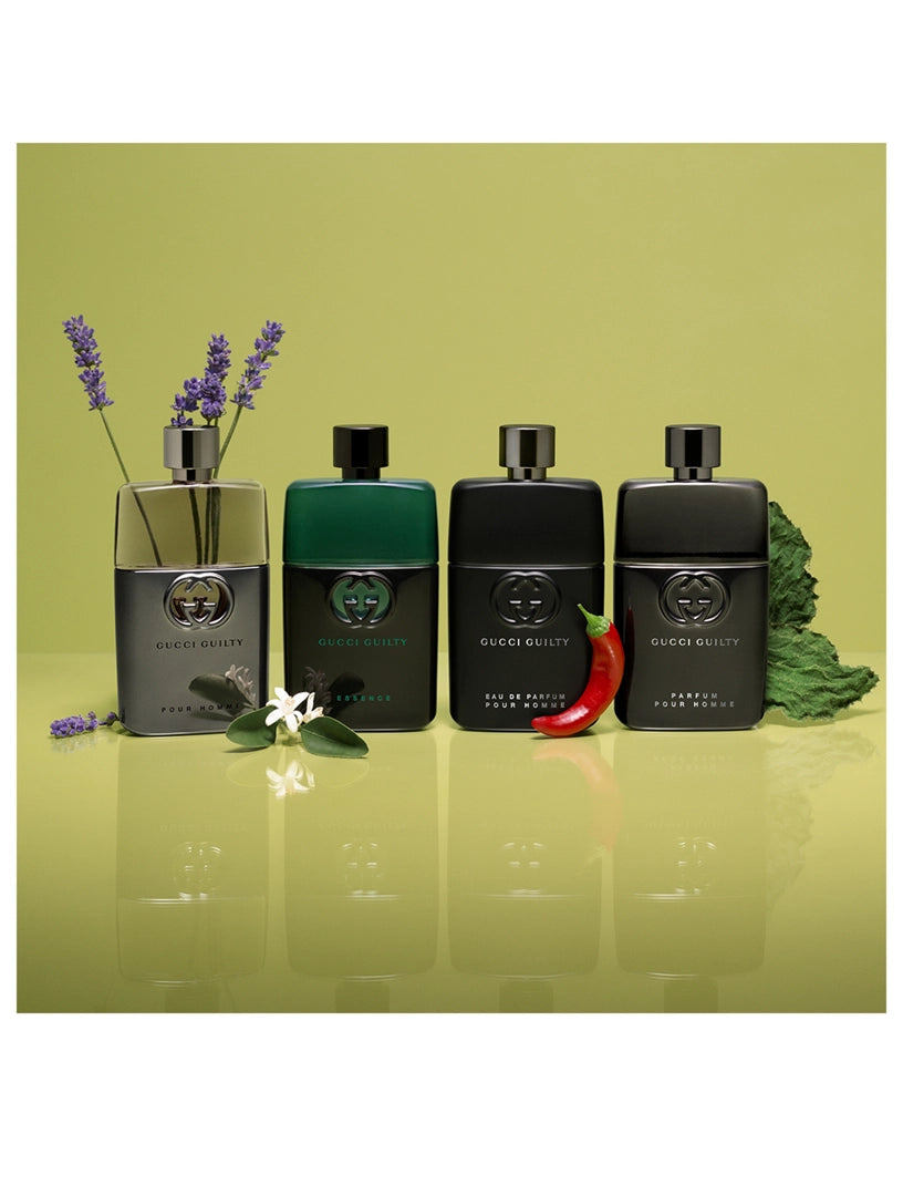 GG Guilty Essence Pour Homme Eau de Toilette for Men celebrates self-acceptance, friendship, and love in all its forms, offering an aromatic Fougère that redefines the fusion of sensuality and authenticity. The fragrance begins with fresh, intense Lavender, a flower historically cherished by the Egyptians and Romans for its captivating scent. At its core, Gucci Guilty’s rebellious spirit meets unconventional perfumery, blending Orange Blossom—typically found in feminine scents symbolizing romance and purity. The fragrance deepens with Patchouli, a signature element in Gucci’s creations, adding a rich, woody depth to the base notes.