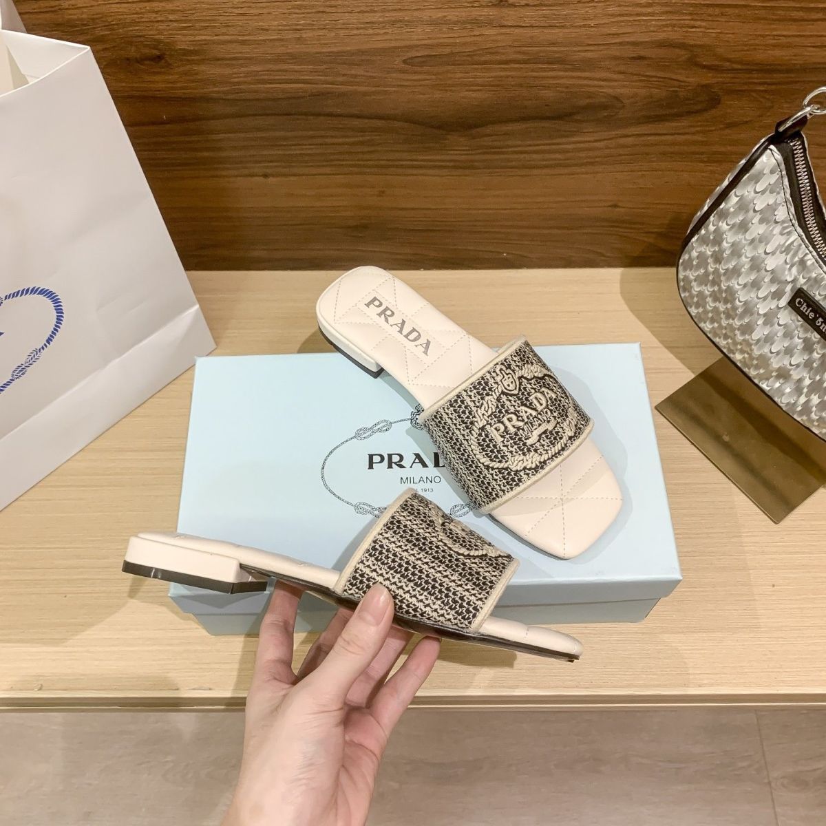 - The embroidery slide has a timeless and emblematic silhouette. The slide's upper features a black embroidered brand signature and instantly stands out. The streamlined shoe slips on easily and offers effortless style.