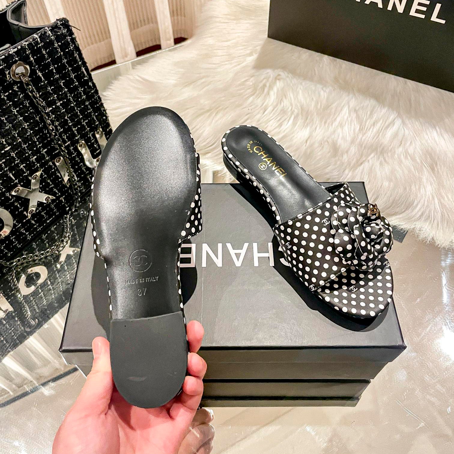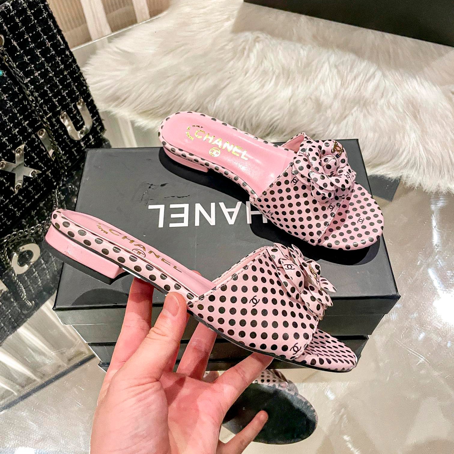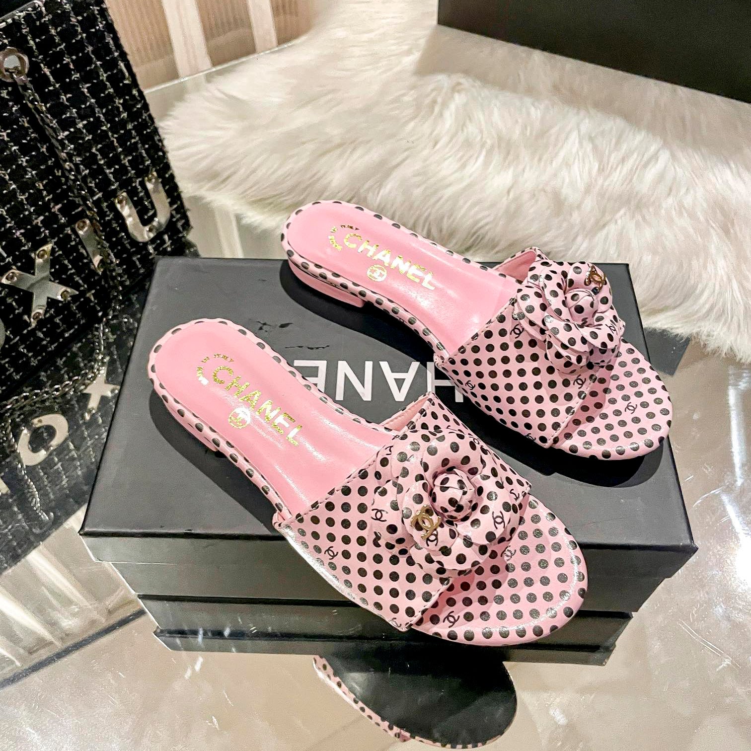 Be the first to review “Retro Polka Diort Flat Slippers”
